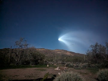 On January 2 of this year John West, who lives in the Black Range, took the photograph shown above. It immediately created a great deal of consternation. It was not taken in the Black Range, in fact quite far away - west of Phoenix. The vegetation was not the Black Range type - but Sonoran. The focal point was not natural history, instead a satellite launch.