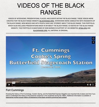 In January 0f 2014 we were well into our series of road-trip videos from the Black Range. That month we published one which depicts the road from NM-26 north to Ft. Cummings, Cooke’s Spring, and the Butterfield Express Stagecoach line station. We have now updated that video to include drone video of the sites at the end of the road. (We also agressively edited the original video and added it to the end of the drone video. The project is now shorter than the original. The original can still be found in our road videos portfolio.) The new video is part of our portfolio of Videos of the Black Range and can be found at Ft. Cummings.