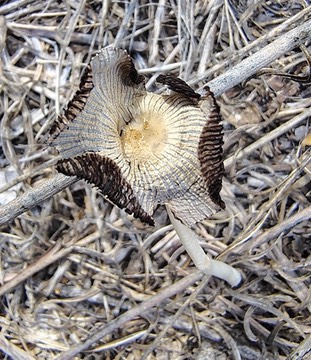 On September 28, 2025 Rebecca Hallgarth and Jan Haley discovered a very small mushroom growing in the right-of-way along NM-152 in Hillsboro. Two photographs by Rebecca Hallgarth are shown below.