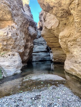 I was hot, I was tired, I was grumpy, I was hungry, I - I suspect you get the picture. I sat down and ate lunch. In retrospect I should have waded into the slot (any quicksand would have been minimal because of the bedrock - I think) and the water was not that cold. The video would have been dramatic. I just was not up to the task.