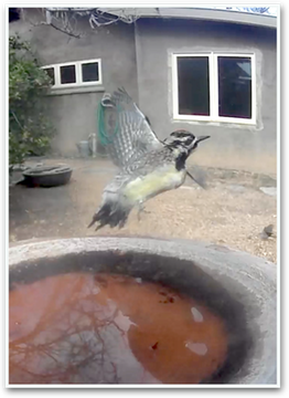 This individual often visited a bird bath where a bird cam has been installed. Images from the bird cam are shown at the right.